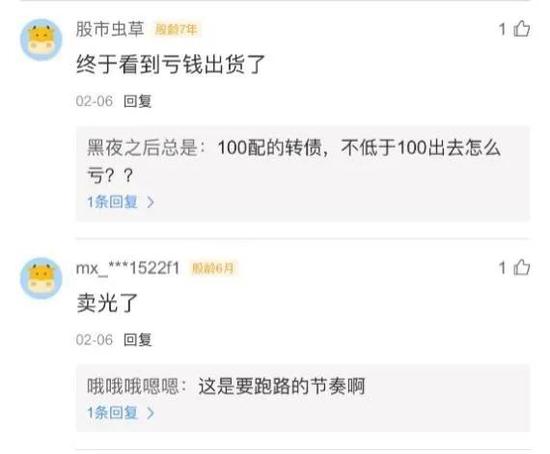 虽然债券和正股并非完全关联,但不少股民仍将之解读为利空信号。同花顺平台上,一些用户用“亏本甩卖”“跑路”等词形容减持行为。