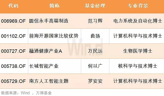 对于由业内博士管理的科技主题基金,比较受市场关注,万得基金为大家整理了几只,以供参考。