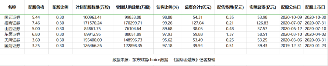 在进一步改革开放下,内外竞争压力驱动券商增强自身实力。2020年券商通过定增等手段“融资补血”,而对于不太具备股东优势的中小券商而言,配股是其补血的重要方式之一。《国际金融报》记者统计获悉,去年有6家券商通过配股共计实际募资近370亿元,最低配股价格为3.25元/股,最高配股价格为7.46元/股。