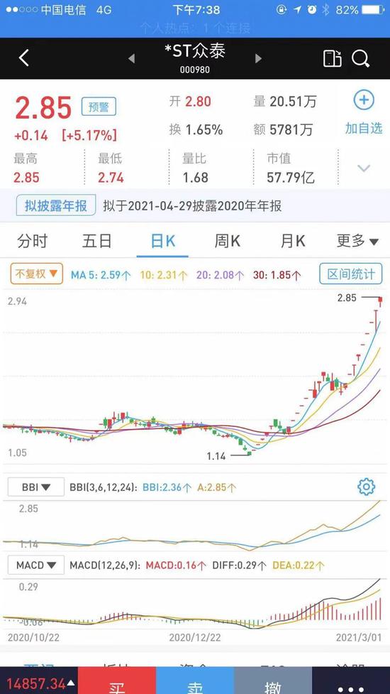 3月1日,*ST众泰继续涨停。随着股价走高,有人开始加仓,有人准备上车。