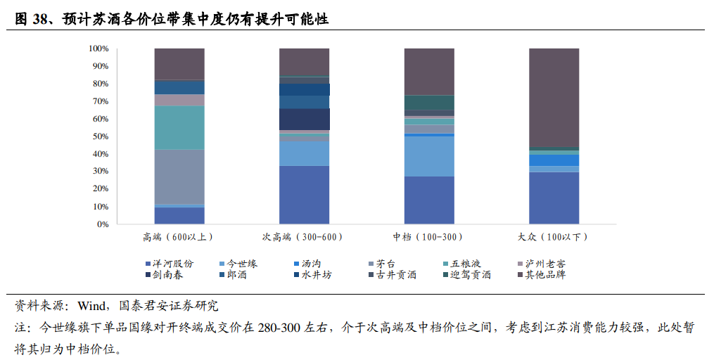 市场倾向于认为,作为苏酒双龙头,洋河、今世缘在江苏省内属于存量博弈;我们则认为,短期内次高端及高端价位的快速扩容为两者省内市场带来增量,结合龙头市占率提升,洋河、今世缘短期内可实现共同成长;而在中长期内,全国次高端以上价位持续扩容将为洋河、今世缘旗下的高端单品提供广阔市场空间。