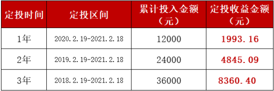 (使用U8指数定投计算器计算;当日指数/1000为模拟买入的价格,计算结果仅供参考;以深证成指为模拟定投标的;忽略费用;统计区间:2017.2.19-2021.2.18)