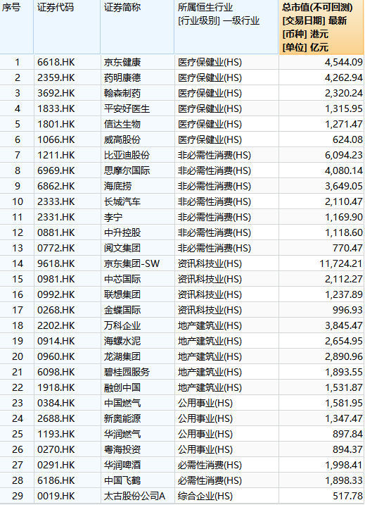 按照七大行业市值靠前个股整理出有望纳入恒指的潜力股,投资者未来可以密切关注这方面的机会。