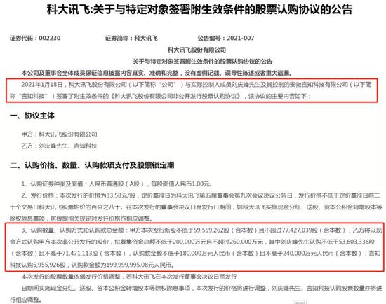 ▼下图为科大讯飞实控人相关认购公告部分截图