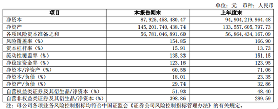 中信证券母公司的净资本及风险控制指标