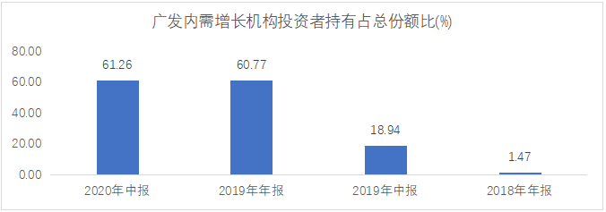 值得一提的是,王明旭的均衡型价值风格,获得了机构客户的认可。根据基金年报数据,广发内需增长的机构持仓占比从2018年的1.47%增长至2020年上半年末的61.26%。