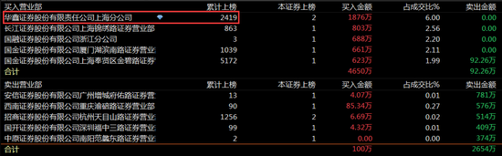 3月2日,龙虎榜数据显示,游资席位华鑫证券上海分公司买入1876万元。