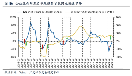 一个互洽的解释是,在经济/盈利修复的中后段,衡量广谱中小企业资质的不良贷款增速会有下降,中小企业盈利能力得到上升。从历史看,06Q1-07Q1、09Q1-10Q1、12Q3-13Q3企业盈利向上周期中,银行不良贷款增速放缓的拐点通常出现在企业盈利增速提高的拐点之后,说明企业盈利向上周期的后半段往往迎来中小企业盈利改善。