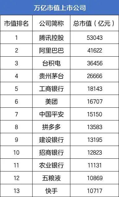 截至2021年2月28日,13家公司市值突破万亿,新经济势力逐渐显现。