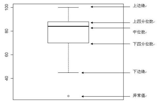 特别说明:箱盒图里面的极大值(上边缘值)并非最大值,极小值(下边缘值)也不是最小值。如果数据有存在离群点即异常值,他们超出最大或者最小观察值,此时将离群点以“圆点”形式进行展示。