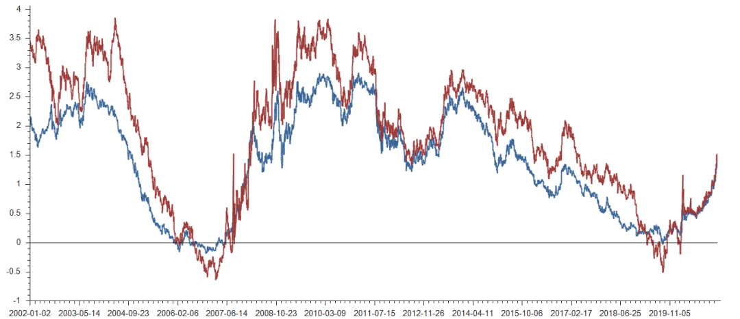 ▲数据来源:鹏华资产 wind(4)美债期限利差与中美利差