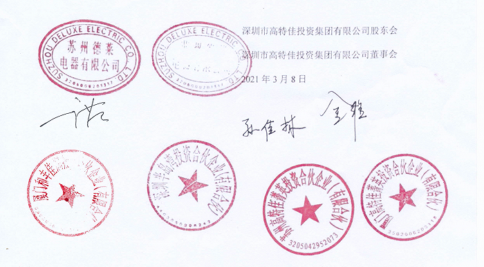 不同于前一日金惠丽没有加盖公章的声明及处分决定,该通报落款为高特佳股东会、董事会,高特佳二股东苏州德莱附公章,高特佳其他股东——厦门高特佳菁英投资合伙企业、苏州高特佳菁英合伙企业、深圳半岛投资合伙企业、厦门和丰佳润投资合伙企业等也均加盖公章,所有加盖股东共持有高特佳股权超过54%。卞庄、孙佳林、金维等三人在该通报上分别签字。孙佳林为高特佳执行合伙人,根据天眼查APP,卞庄为高特佳董事、德莱董事长兼总经理,金维为高特佳监事。