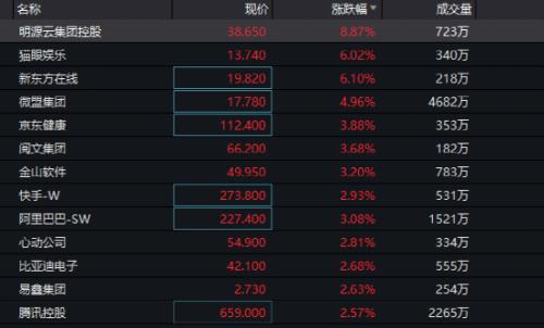从盘面上看,腾讯控股、阿里巴巴、快手、京东健康等港股龙头股带动反扑,逆转趋势明显。比亚迪电子、国美零售等多股快速拉升。香港本地股也同样涨幅明显。