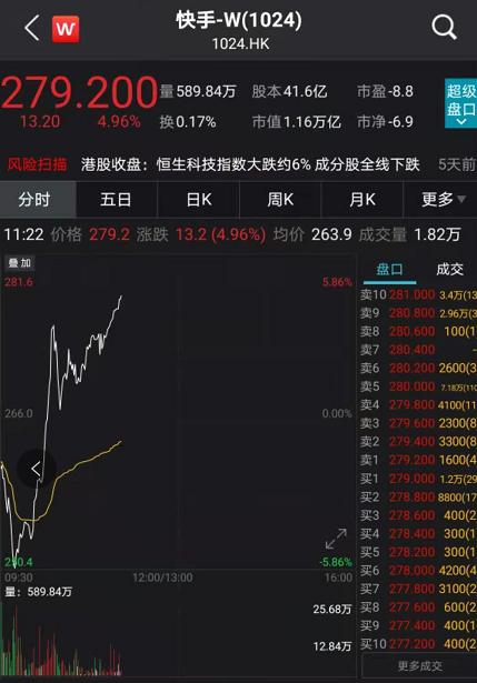 截至上午11点20分左右,快手股价涨近5%左右。