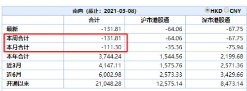 3月以来,南向资金持续流出资金规模已经超百亿港元。