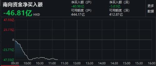 3月9日11点15分左右,南向资金净流出超46亿港元。
