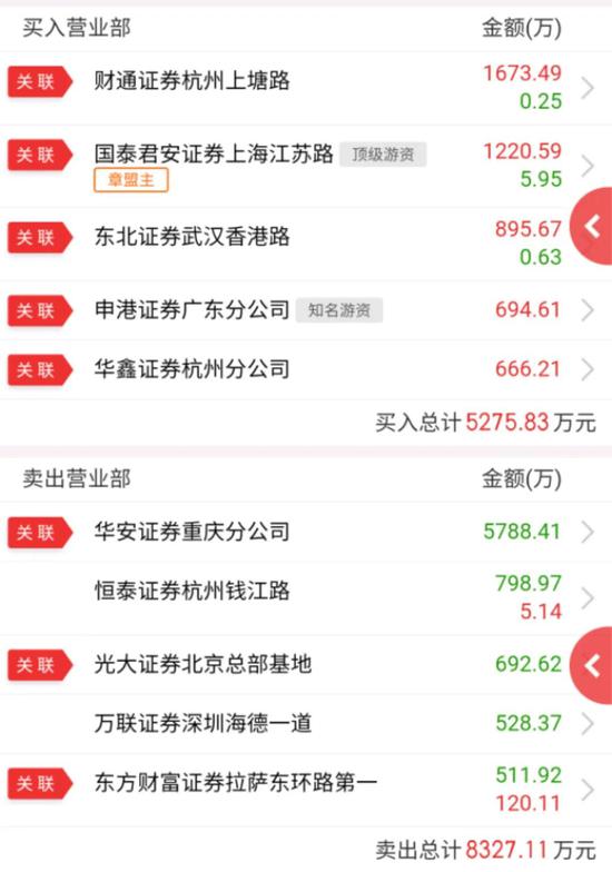 从榜单的情况看,在持续的炒作下,一线知名游资成为榜单常客,包括有“砸盘侠”之称的著名游资—财通证券杭州上塘路营业部,传说其操作手法为“首日封涨停、次日核按钮”。