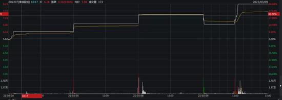 午后开盘后不久,准有股份行情再次发生戏剧性变化。该股股价直线拉升,截至13:07分,股价报8.23元封上涨停板,7分钟内涨幅达13.7%。