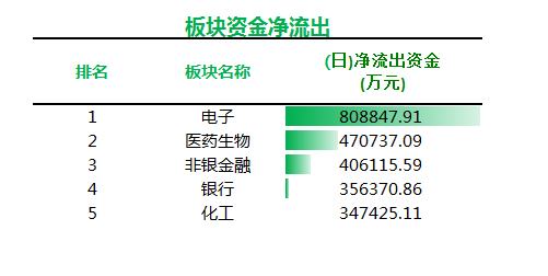 今日主力净流出480.3695亿。其中,沪市今日主力净流出197.5585亿,深市今日主力净流出282.8110亿,中小板今日主力净流出96.1799亿,创业板今日主力净流出97.3197亿。