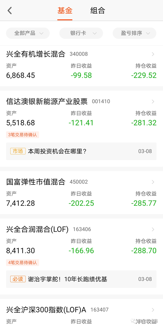 我对基金的了解都是来自于“坤坤”,在买之前,我完全没有想过要设置止盈线或者止损线一类的。从1月到今天,我前后总共投进去9000元,目前只剩下8000元左右,亏了大约11%左右。