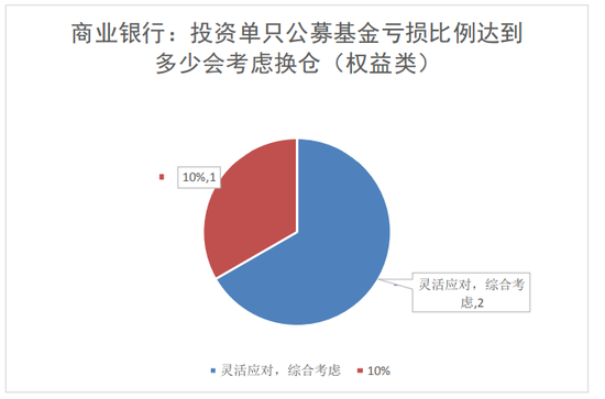 3家商业银行中,2家银行会灵活应对,综合考虑,1家银行在亏损比例达 10%会考虑换仓;以上两类占比分别为67%、33%。