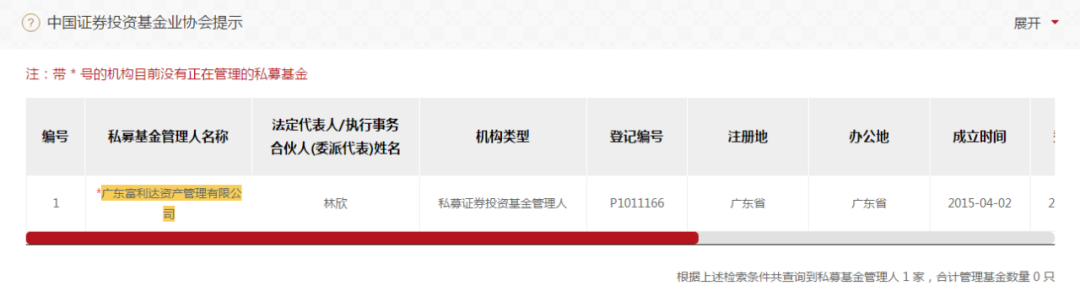 目前,富利达资管已没有正在管理的私募基金。记者查询中基协官网获悉,富利达资管成立于2015年4月,机构类型为私募证券投资基金管理人,机构信息最后更新时间为2020年1月22日。富利达资管已成“标星”机构,“标星”表示该机构目前没有正在管理的私募基金。