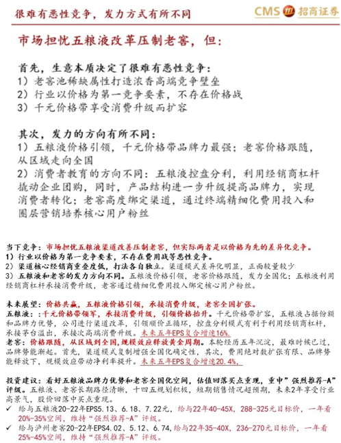 招商证券:五粮液与老窖价格共赢,竞争错位,维持强烈推荐评级