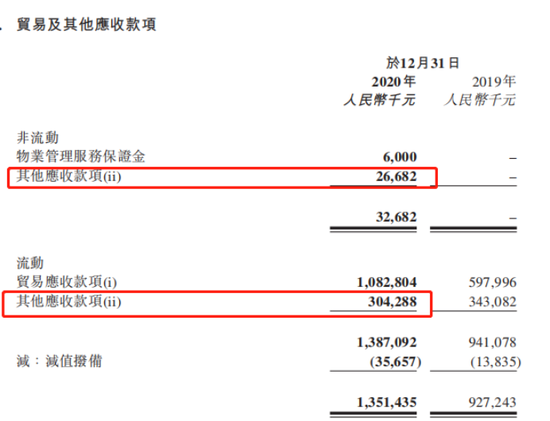 2020年底,融创服务“其他应收款”合计约3.3亿元。财报中解释道,其他应收款项主要包括已付可退还押金、代业主支付能源费用等。
