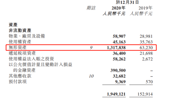 在增长10倍之多的非流动资产中,无形资产的暴增贡献了大助力,其从2019年的0.63亿元,翻增近20倍为13.17亿元,而这便是收购开元物业股权所致。