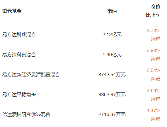 易方达的陈皓管理的六个基金中的四个基金四季度的前十大重仓股都新进了华友钴业,其中易方达科翔混合持有的市值最高,高达2.21亿元,占整个基金持仓的3.73%。