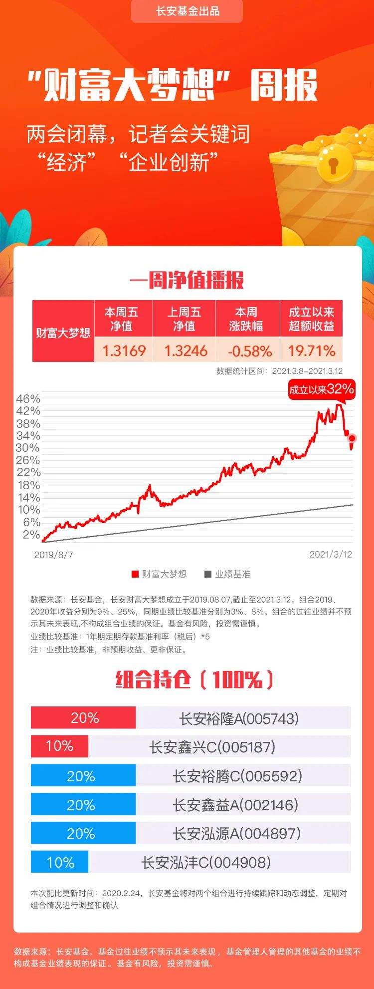 上周A股市场震荡调整,组合中的偏股类子基金相应下跌,偏股子基金占比为10%左右的“投资小确幸”基金组合小幅下跌-0.19%。偏股子基金占比为30%左右“财富大梦想”基金组合下跌-0.58%,两只组合还是较好的控制了风险。我们将继续以追求“绝对收益”为目标,为投资者创造价值。
