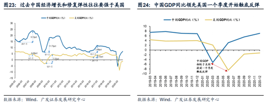2021年,中国的经济修复弹性或弱于海外。首先从分子端来看,历史上全球经济上行或修复阶段,中国经济增长和修复弹性往往要强于美国。以2008年次贷危机后的经济修复为例,中国GDP增速由底部6.6%历时9个月上行至阶段顶部18.3%,共上行11.7pct,反观美国GDP增速历时12个月由-2.8%上升至4.5%,仅上行7.4pct。而本轮中国率先从“疫情”黑天鹅中走出,经济复苏领先全球,由于复苏前移或使得2021年经济修复弹性弱于海外,以国内经济为基础的港股分子端的相对比较优势或较以往可比阶段偏弱。