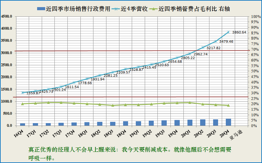 亚马逊该指标优秀,整体处于优秀区域区间位置,获利能力较强。