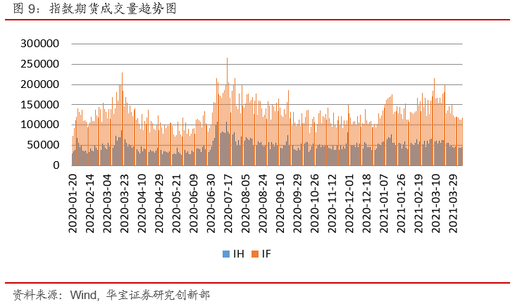 上证50指数期货和沪深300指数期货成交量比上一交易日小幅上行,当天上证50指数期货成交了45072张合约,沪深300指数期货成交了117919张合约,投资者在场内期权市场和期货市场寻找最适合自己的对冲工具。