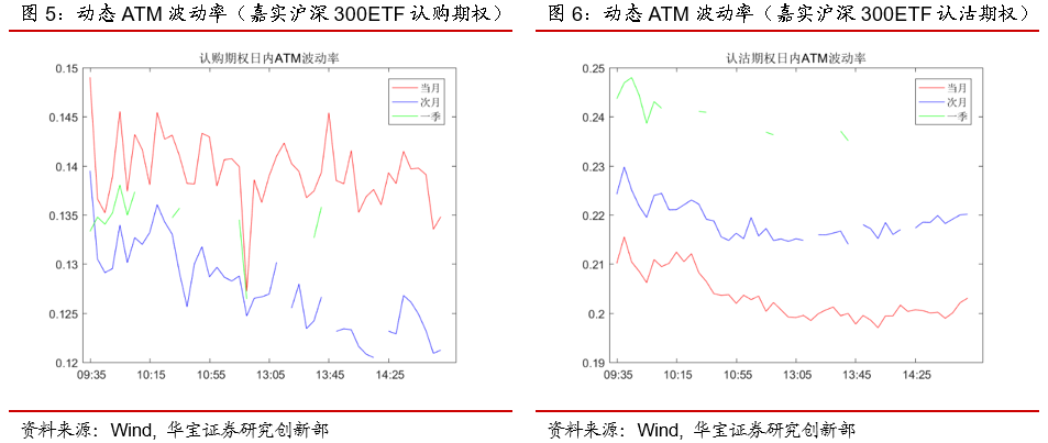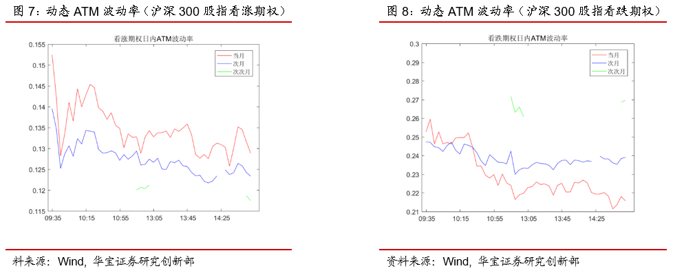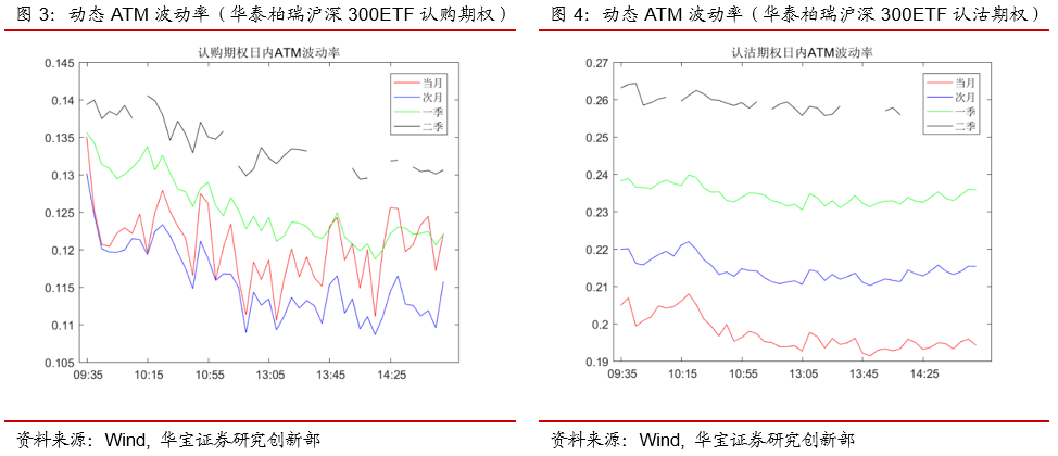 华泰柏瑞沪深300ETF期权,隐含波动率震荡下行,认购期权的ATM波动率目前在11.5%-13%之间,认沽期权的在19%-26%之间。
