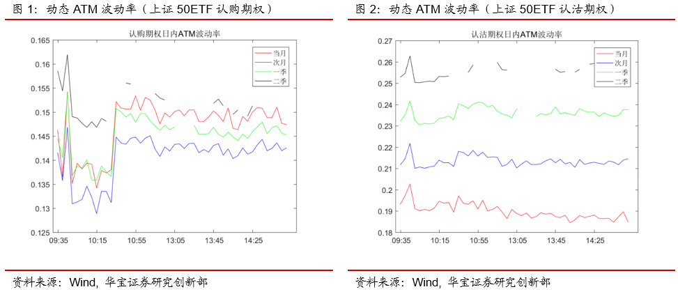 期权市场依旧是平值附近的认购和认沽期权交易更为活跃,从成交结果来看,隐含波动率震荡下行,市场交易理性。我们分别来看: