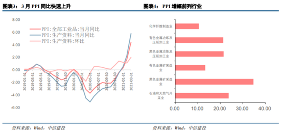 在以美国为首的海外复苏主线下,未来短期内全球大宗商品仍有上涨空间。叠加去年同期海外疫情低基数因素,预计未来短期内PPI仍将保持上行趋势。