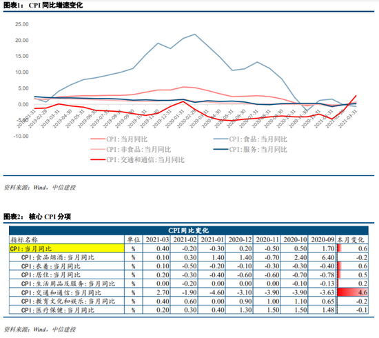 3月CPI由负转正,上涨温和。根据国家统计局数据,中国3月CPI指数同比上升0.4%,高于前值的-0.2%。拆分数据来看,我们认为CPI的温和上涨来自于两个方面相反方向趋势的共同影响: