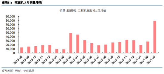 挖掘机销量环比大增。2021年3月各类挖掘机销量为79035台,同比增长60%,年初以来累计销量达126941台。对比2月28305台的销量,环比增长达179.22%。除去节后多地复工这一因素外,销量大升的主要原因在于:一方面国内2020年下半年我国实现了V型经济复苏,推动工程项目投资开工需求稳中有涨,同时从房地产新开工施工面积来看,房地产投资和施工今年来有明显回升。另一方面,今年全国大力推行环保新政,各地基建项目及工厂应要求进行合规治理和改善,作业需求拉动挖掘机景气度提高。此外,随着海外疫苗接种范围的不断扩大和全球经济复苏脚步加快,预计今年挖掘机出口销量也将有大幅提升。