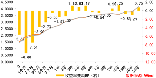 2)本期银行间国债收益率不同期限多数上涨,各期限品种平均涨0.97bp。其中,0.5年期品种上涨5.57bp,1年期品种上涨1.15bp,10年期品种上涨1.08bp。本期国开债收益率不同期限多数下跌跌,各期限品种平均跌1.6bp。其中,1年期品种下跌1.51bp,3年期品种上涨1.15bp,10年期品种上涨1.25bp。