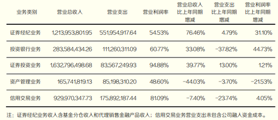 证券投资业务分部收入16.33亿元,同比增长39.77%;毛利率高达94.88%,同比增加1.21个百分点。