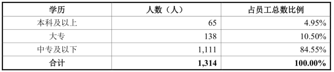 此外,《投资时报》研究员注意到,截至报告期末,菲菱科思共有研发技术人员296人,占公司员工总数的22.53%,但研发人员整体学历并不高。