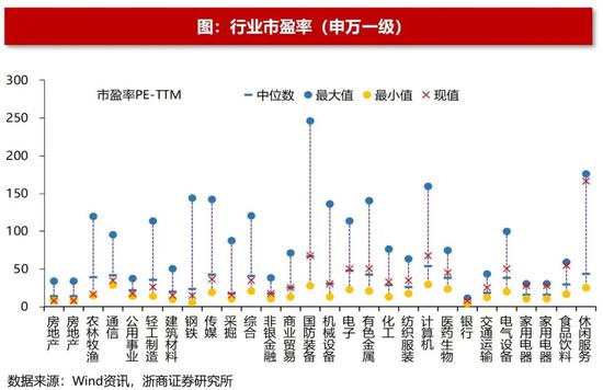 上周市盈率分位数(十年)较低的行业有房地产 (0%)、建筑装饰 (0%)、农林牧渔 (1.8%)、通信 (11.5%)、公用事业 (12.9%),市盈率分位数(十年)较高的行业有休闲服务 (99.6%)、食品饮料 (99.4%)、家用电器(99%)、家用电器 (99%)、电气设备 (91.9%)。