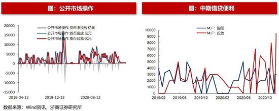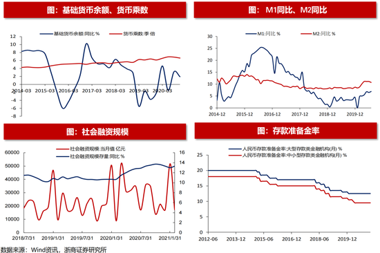 2020年Q4货币乘数为6.62,下降0.2。基础货币余额同比减少1.5%。