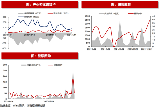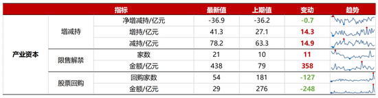 4. 上周A股转为净增持、回购规模下降,本周限售解禁规模下降;