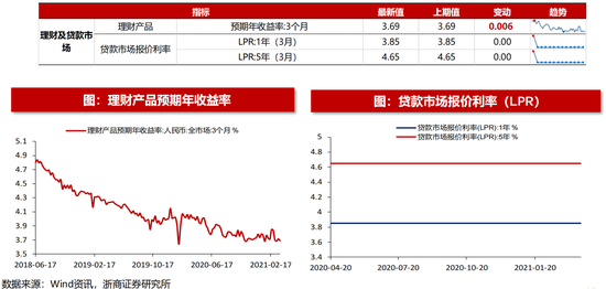 上周理财产品预期年收益率上升。上周理财产品预期年收益率(3个月)为3.69%(+0.006%)。
