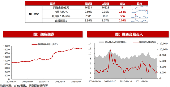 上周两融余额上升。上周杠杆资金两融余额为16633.6亿元(+110.6亿元),市值占比为2.6%(+0.54%)。