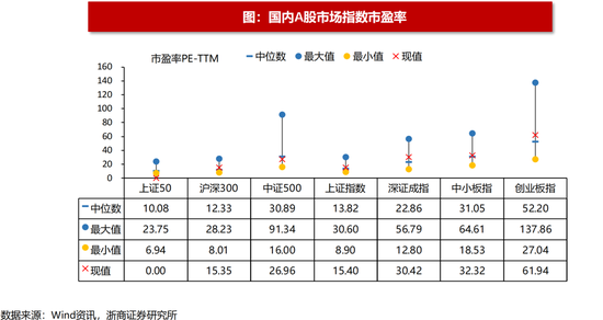 上周上证50、沪深300、中证500、上证指数、深圳成指、中小板指、创业板指的市盈率分别为13.13、15.03、26.91、15.27、29.69、31.57、60.25。过去十年分位数分别为93.5%、85.9%、24.5%、67%、76.3%、54.1%、73.9%。