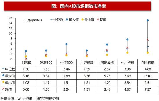 上周上证50、沪深300、中证500、上证指数、深圳成指、中小板指、创业板指的市净率分别为1.46、1.67、2.05、1.5、3.4、4.24、7.39。过去十年分位数分别为66.9%、67.2%、21%、38.1%、83.8%、62.9%、86.8%。
