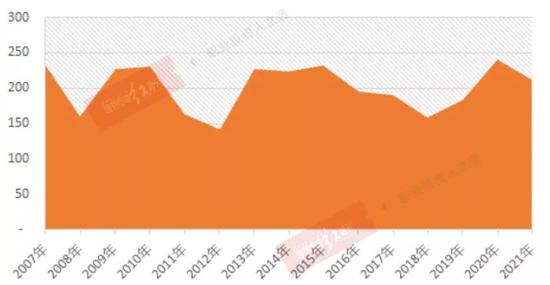 伴随销量以及市场份额的下降,燕京啤酒的市值一蹶不振。最新交易日,燕京啤酒总市值仅197亿元,这意味着燕京啤酒的市值从2007年以来就一直处于横盘状态。